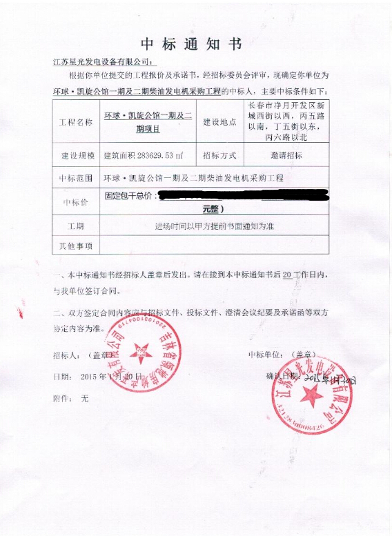 環(huán)球.凱旋公館一期及二期柴油發(fā)動(dòng)機(jī)采購(gòu)工程